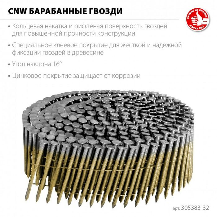 - Тип гвоздя: CNW