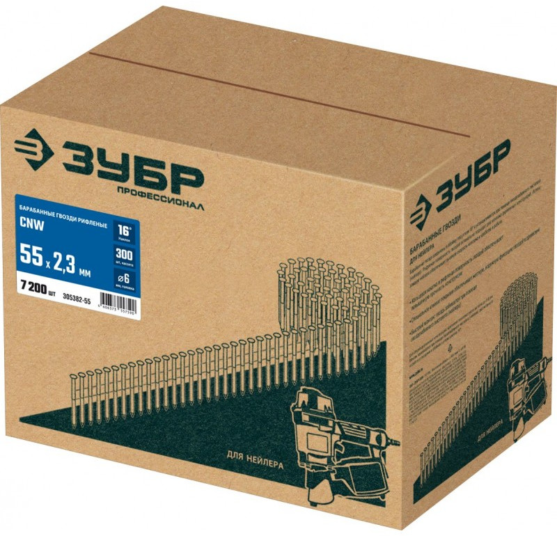 Барабанные гвозди рифленые Зубр CNW 55 х 2.3 мм 7200 шт [305382-55]