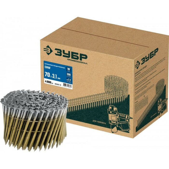 Барабанные гвозди рифленые Зубр CNW 70 х 3.1 мм 4800 шт [305382-70]