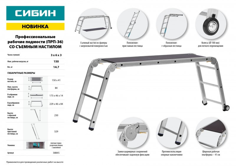 - Лестницы СИБИН предназначена для выполнения различных хозяйственных работ. Надежная конструкция в сочетании с высококачественными материалами обеспечивают легкость и удобство в эксплуатации.