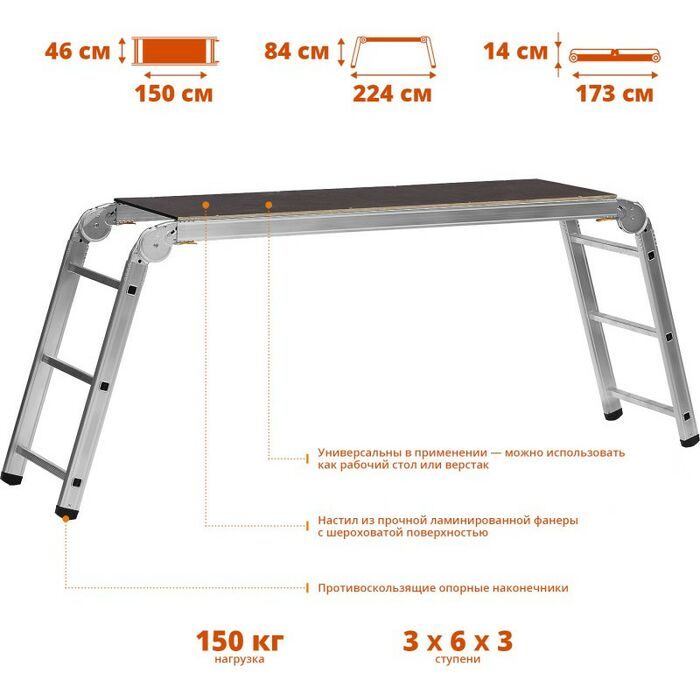 - Материал: ступени и боковины: алюминий
