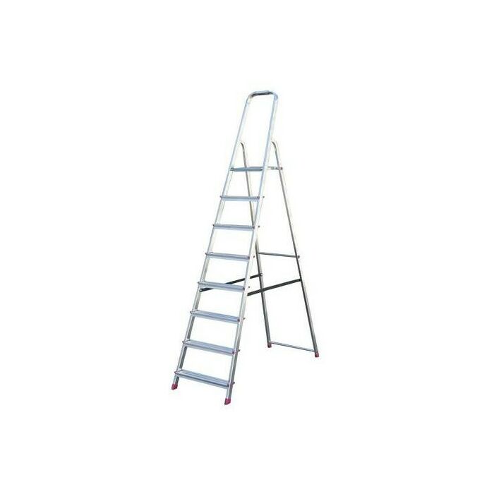 Стремянка алюминиевая ВИХРЬ СА 1х8 широко применяется в быту. Корпус изготовлен из алюминия, что облегчает транспортировку. Односекционная модель с широкими ступенями с рифленой поверхностью и рабочей площадкой. Чтобы стремянка не скользила, на опорах оборудованы заглушки. Также есть дуга безопасности. В сложенном состоянии модель очень компактна и занимает мало места.