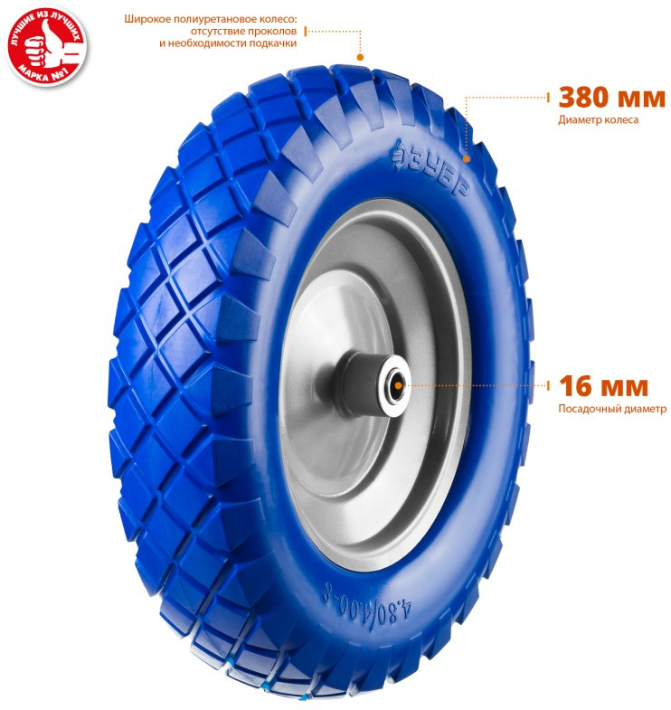 Полиуретановое колесо Зубр КПУ-2 380 мм для тачки арт. 39903 [39912-2]