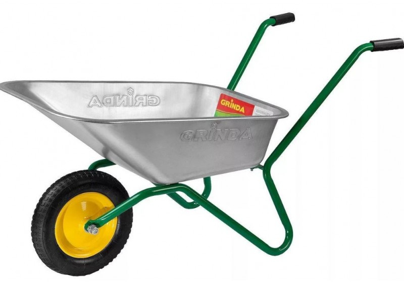 - Стальной кузов толщиной 0,7 мм и объемом 80 л для сыпучих грузов имеет цинковое покрытие, обеспечивающее защиту тачки от внешних воздействий