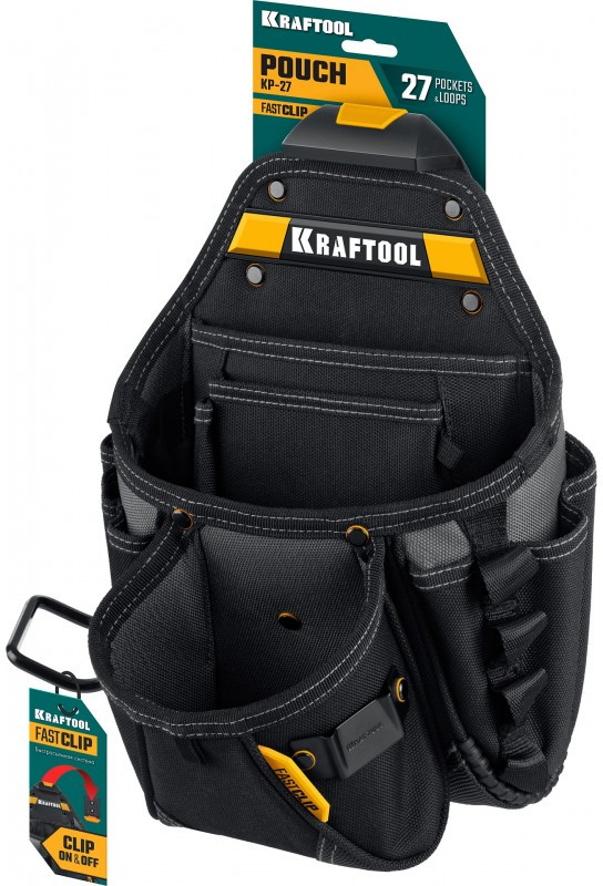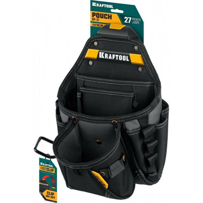 Поясная сумка KRAFTOOL KP-27 с быстросъёмным креплением FastClip, 27 карманов и петли, 350 х 260 мм [38773]