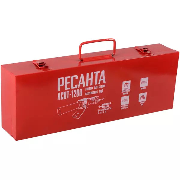 Аппарат для сварки пластиковых труб РЕСАНТА АСПТ-1200 220 В, 1200 Вт, до 300°, насадки 16-32 мм (4 шт.), кейс