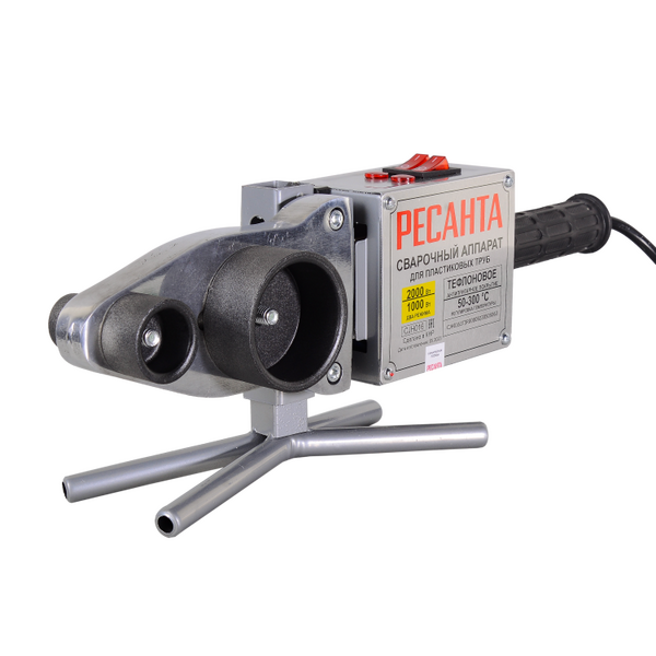 Аппарат для сварки ПВХ труб РЕСАНТА АСПТ-2000К 220 В, 2000 Вт, до 300°, насадки - 20-63 мм (6 шт.), кейс