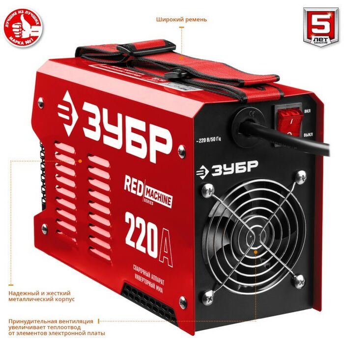 - Мощный сварочный аппарат предназначен для ручной электродуговой сварки с применением плавких электродов (ММА). Электронные компоненты и микропроцессорное управление сварочным током обеспечивают малые вес и габариты, стабильность характеристик и оперативное подстраивание к любым условиям процесса сварки: реализация защит, облегчение зажигания дуги, возможность сварки различных материалов различными электродами и т.д. ЗУБР - передовые технологии у Вас на службе