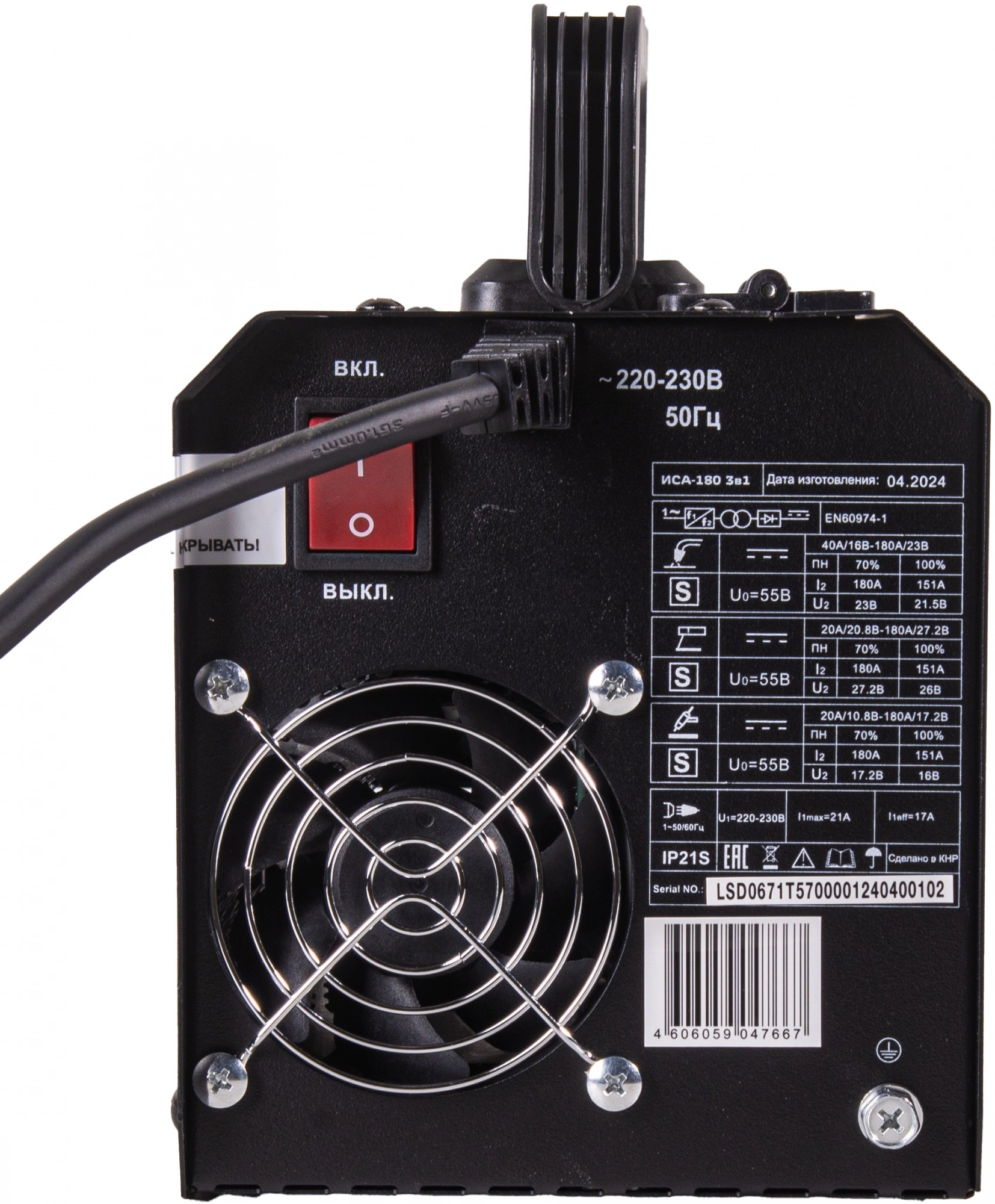 | Сварочный ток, макс | 180 A |