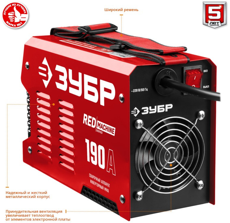 - Мощный сварочный аппарат предназначен для ручной электродуговой сварки с применением плавких электродов (ММА). Электронные компоненты и микропроцессорное управление сварочным током обеспечивают малые вес и габариты, стабильность характеристик и оперативное подстраивание к любым условиям процесса сварки: реализация защит, облегчение зажигания дуги, возможность сварки различных материалов различными электродами и т.д. ЗУБР - передовые технологии у Вас на службе