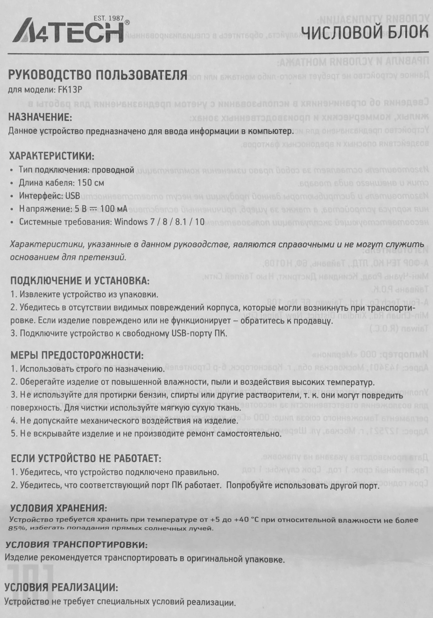 Вес (клавиатуры)0.139 кг