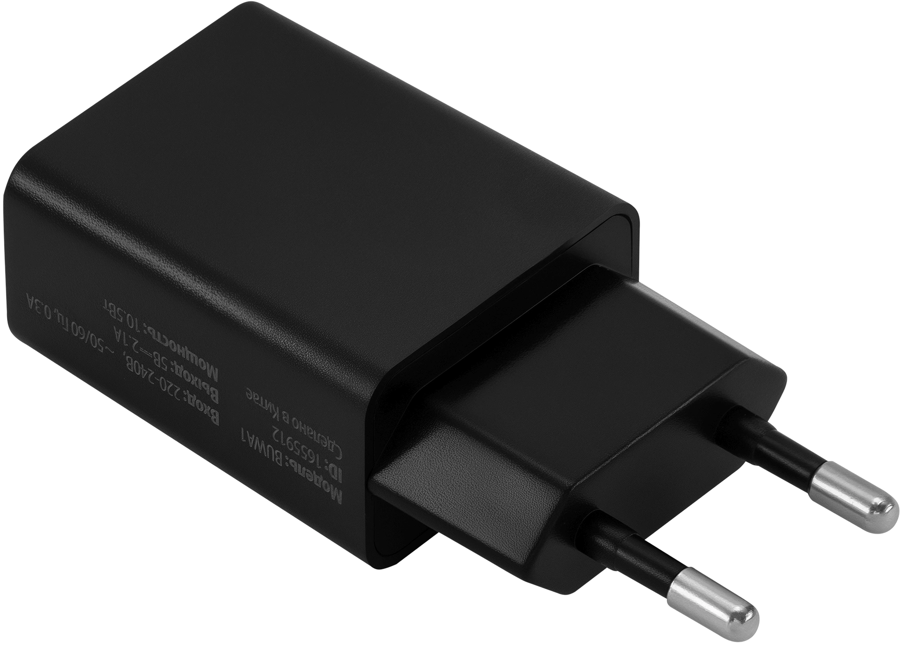 Универсальное сетевое зарядное устройство с выходом USB-A с максимальной силой тока 2.1 А, позволяющее заряжать мобильные устройства разных производителей.