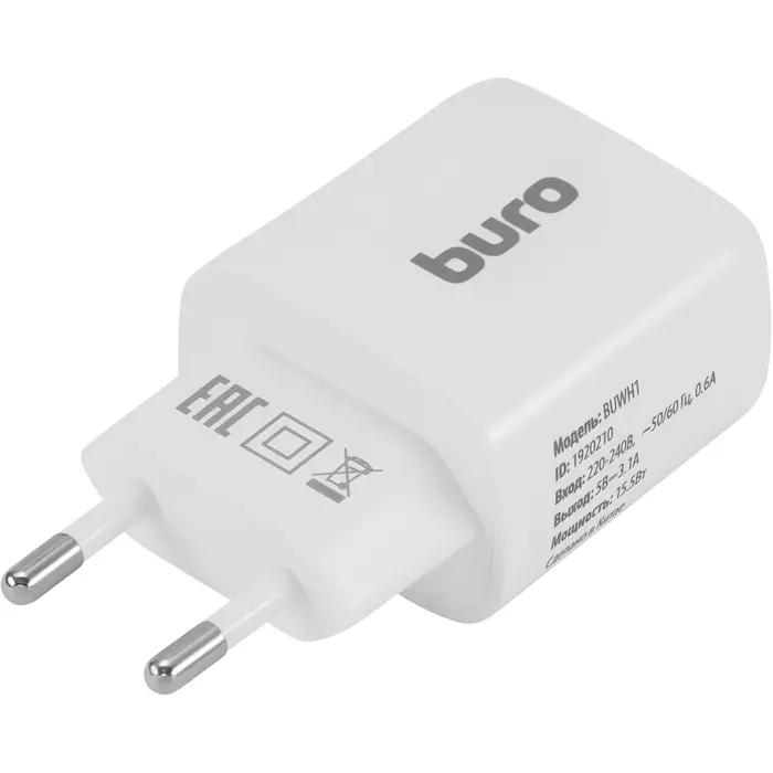 Сетевое зар./устр. BURO BUWH1 15.5W 3.1A 2xUSB универсальное белый [BUWH15S200WH]