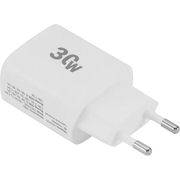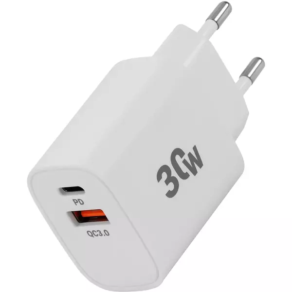 Сетевое зарядное устройство с 2 разъемами - USB-C с поддержкой быстрой зарядки Power Delivery (PD 30W) и USB-A QC3.0