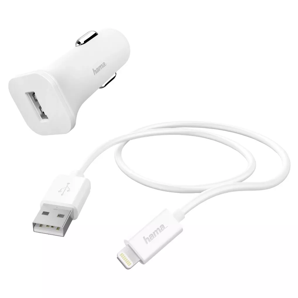 Комплект для зарядки прикуривателя Hama , Lightning, 1 А, белый.