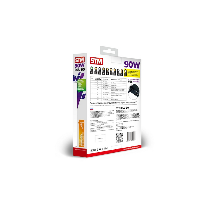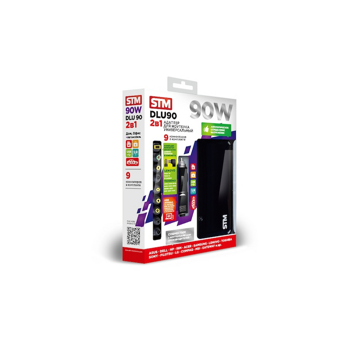 Универсальный адаптер для ноутбуков STM DLU90 90W, EU AC power cord & Car Cigaratte Plug, USB(2.1A)