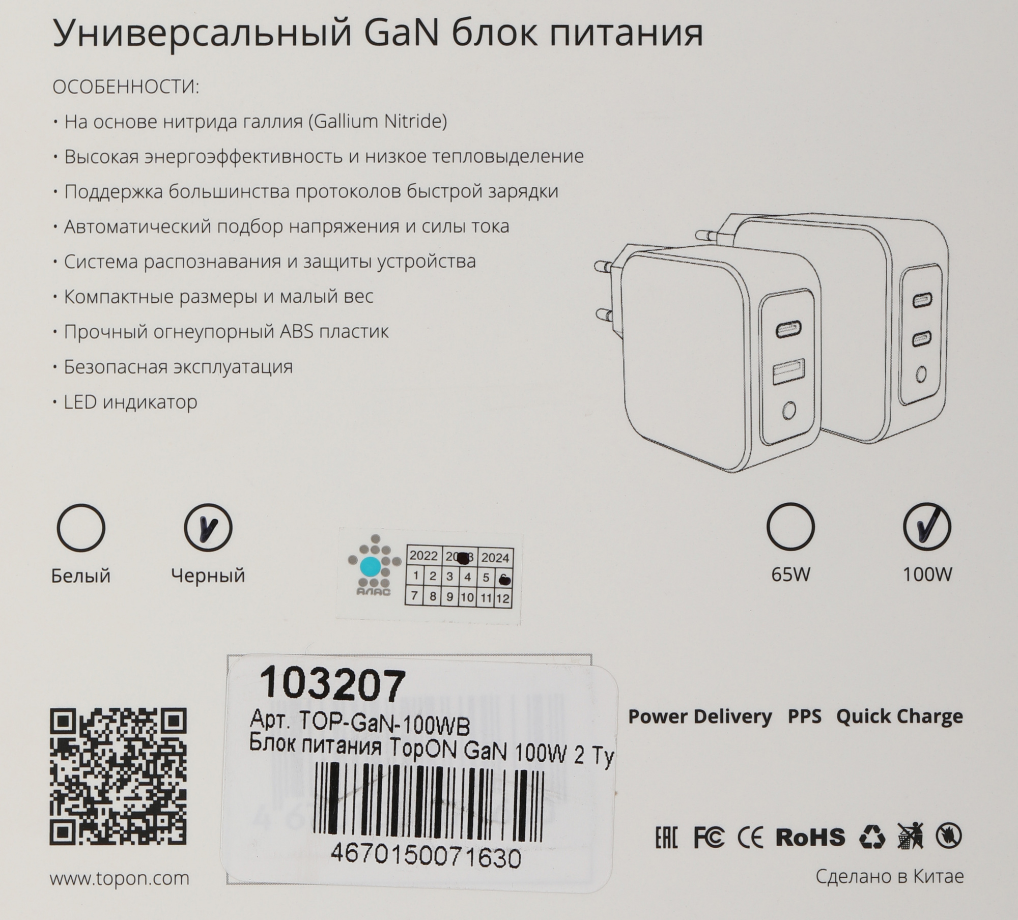 Наличие товара TopON TOP-GaN-100WB [103207]