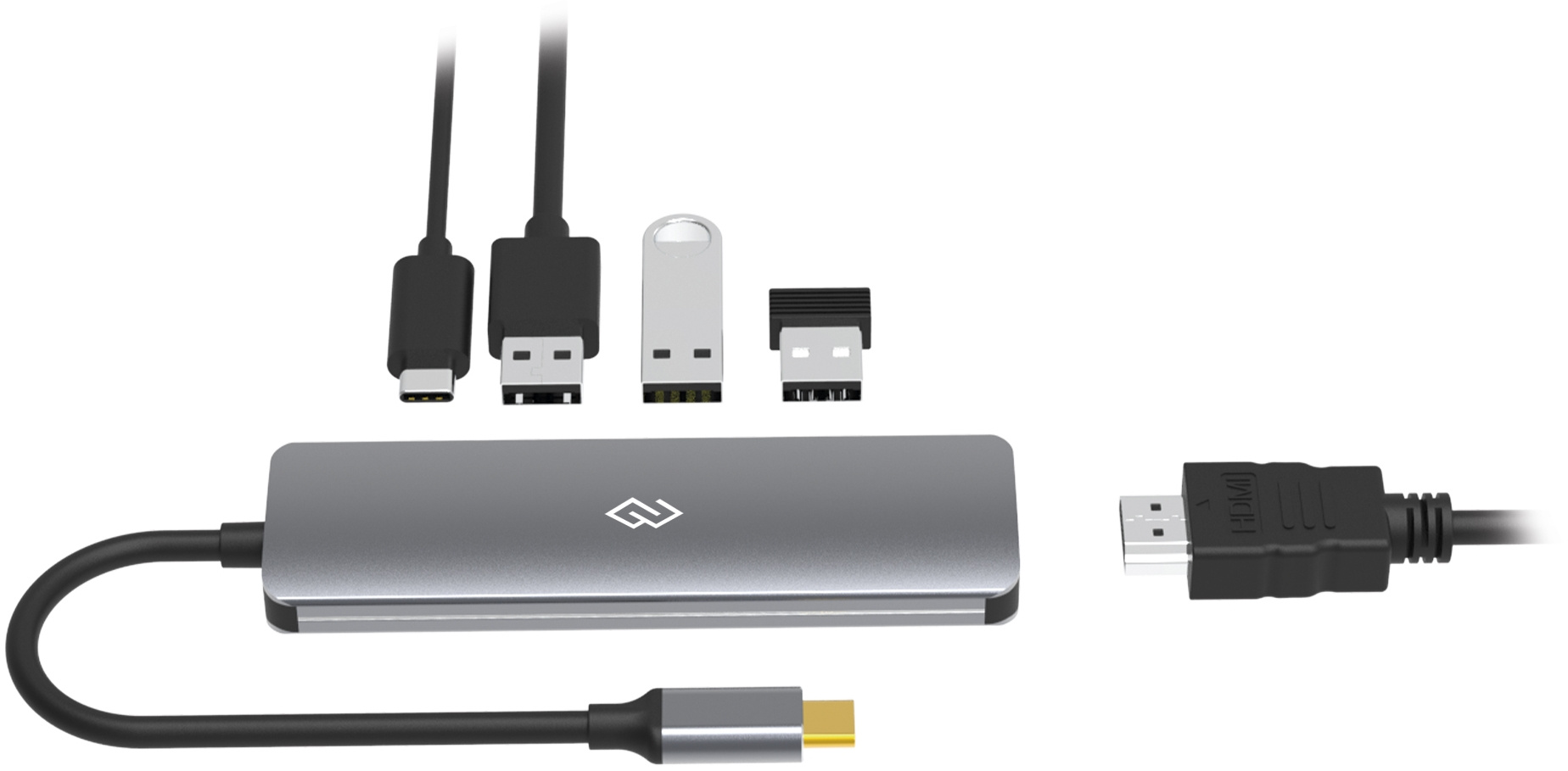Type-C док-станция DIGMA, 5 портов - 1x HDMI( 4K@30Hz) +1x 3.2 USB-A Gen.1( 5Gbps)+ 2x USB-A 2.0 (480 Mbps) + 1 x USB-C PD 3.0 100W