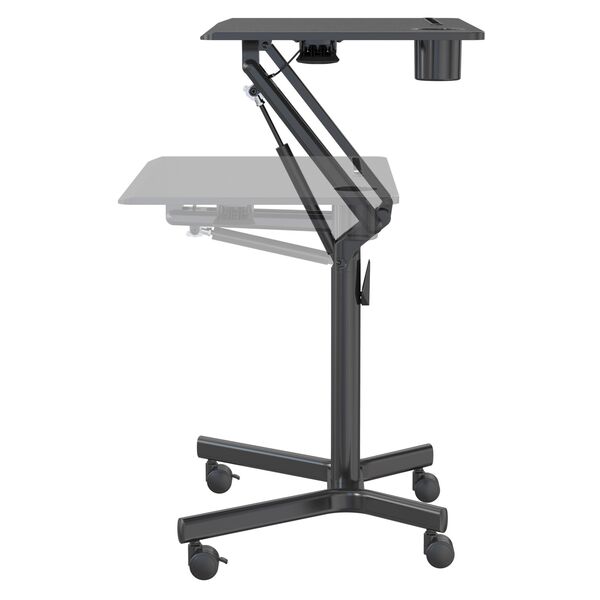 | Особенности | Подъемный механизм плавно опускает и поднимает столешницу, можно остановить в любом положении. Управление при помощи одного рычага. Наличие 4 колес обеспечивает маневренность, 2 колеса со стопором, для придания устойчивости. |
