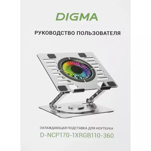 Подставка для ноутбука Digma D-NCP170-1xRGB110-360 17" 240x230x50мм 28дБ 2xUSB 1x 110ммFAN 940г Fan-control алюминий серый