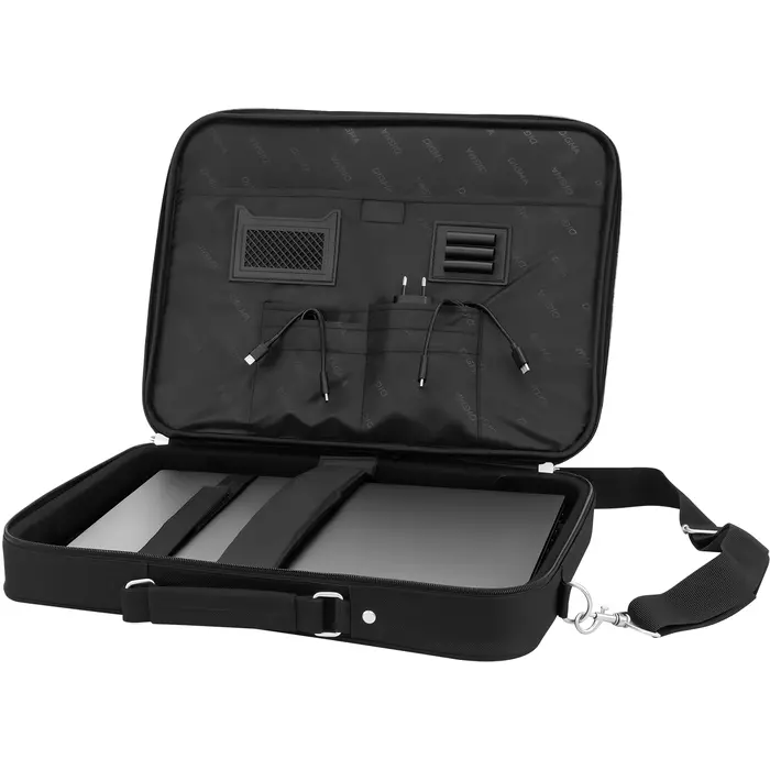 Удобная сумка классического дизайна для ноутбуков с экраном 15,6 дюйма. В основном отделении предусмотрены съемная перегородка и специальный ремешок для плотной фиксации внутри. Также внутри есть несколько полезных отделений для принадлежностей и личных вещей.