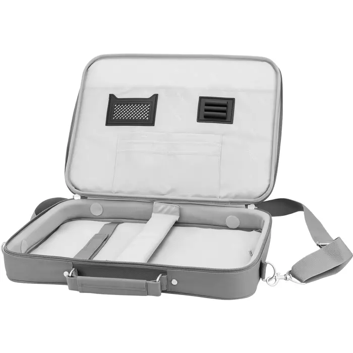 Удобная сумка классического дизайна для ноутбуков с экраном 15,6 дюйма. В основном отделении предусмотрены съемная перегородка и специальный ремешок для плотной фиксации внутри. Также внутри есть несколько полезных отделений для принадлежностей и личных вещей.