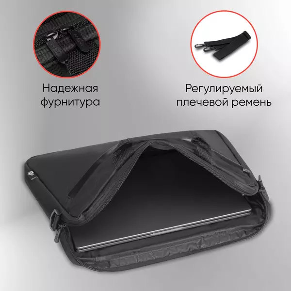 Сверхтонкая и легкая сумка для ноутбуков с экраном 15,6 дюйма. Основное отделение и передний карман закрываются на молнию. Внутри сумка выделана мягким материалом, под которой находится особый наполнитель, который предохраняет устройство от повреждений.