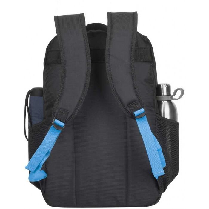 Изготовленный из высококачественного полиэстера, он прочный, вместительный и модный. Светло-голубые стежки контрастируют с темно-черными тканями, придавая рюкзаку определенную уникальность. Обладает множеством функций, обеспечивающих универсальность и долговечность.