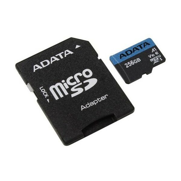 Карта памяти AData Premier SDXC 256Gb V10 UHS-I U1 Class10+ microSD-->SD Adapter [AUSDX256GUICL10A1-RA1]
