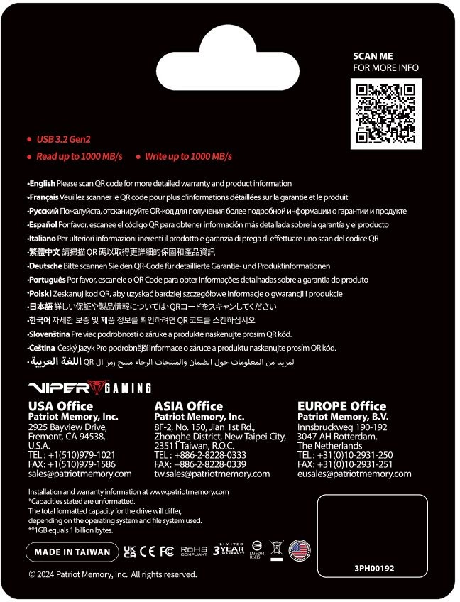 Наличие товара Patriot 1TB [PVP301TB28UDG]