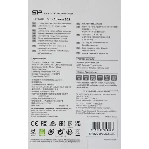 Описание Silicon Power Накопитель SSD USB3.0 512GB S05 Stream 1.8" черный