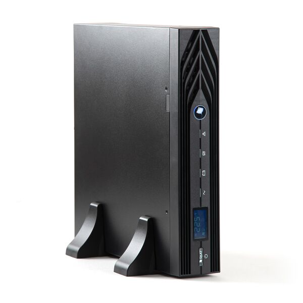 220 В, 1000 ВА (900 Вт), Online, синусоидальная форма выходного напряжения, световая и звуковая индикация режимов работы, ЖК-дисплей, необходимое кол-во АКБ для работы – 2 шт. (24 В) ёмкостью 40–120 Ач. Ток заряда АКБ – 6 А. Дистанционный мониторинг по RS 232, USB, порт для платы релейного интерфейса Функция удалённого аварийного отключения выходного напряжения (EPO). Корпус под 19" шкаф, высота 2U или настольная установка.