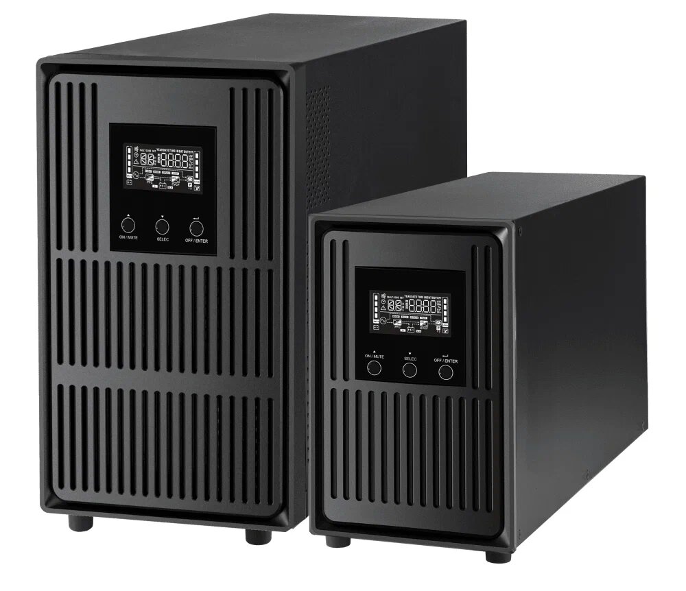 ЖК-дисплей позволяет выполнить настройку параметров, а также иметь визуальную информацию о состоянии ИБП при его работе. Выходной коэффициент мощности, равный 1, позволяет подключать нагрузку без потери выходной мощности.