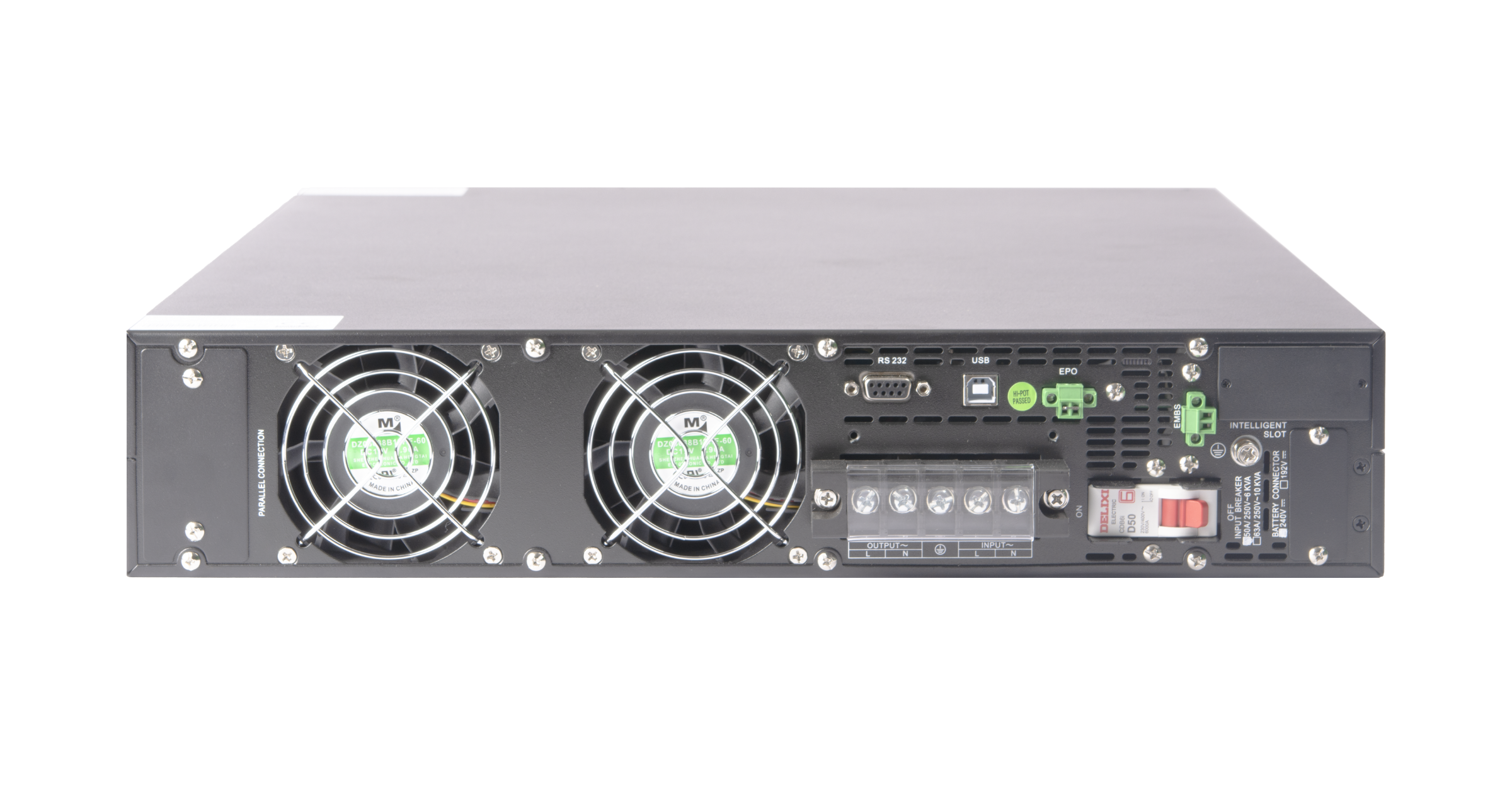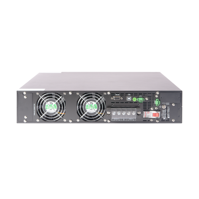 Модель является однофазным ИБП типа On-line с мощностью 6000 ВА / 6000 Вт. Внутренние АКБ не предусмотрены. Для увеличения времени резервирования доступно подключение дополнительных батарейных блоков или внешних АКБ с напряжением 240 В. ИБП данной серии возможно установить как в шкаф 19”, так и в формате Tower c помощью специального приспособления для напольного размещения — это позволяет интегрировать устройства вне зависимости от предоставляемых условий.