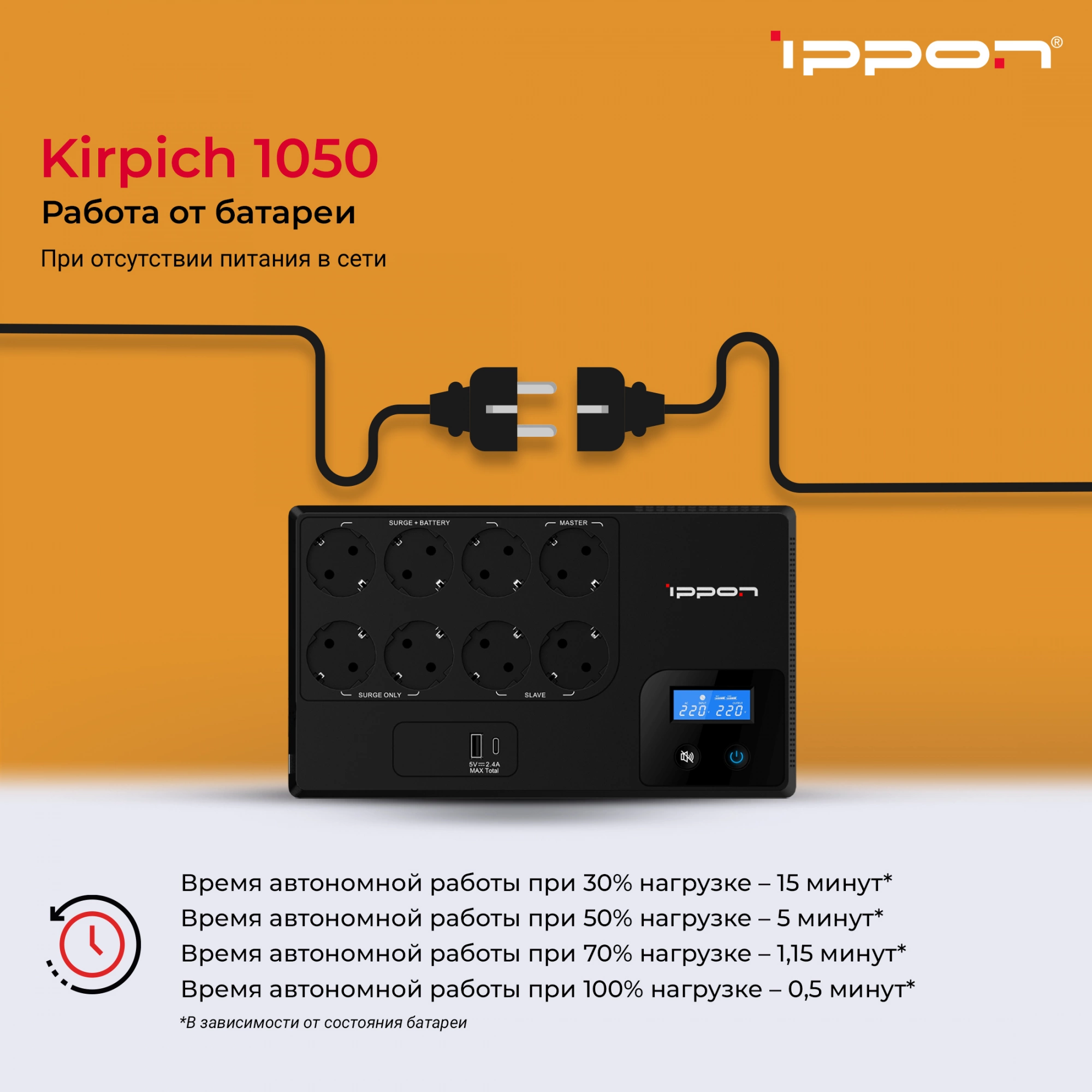 | Время автономной работы при 30% нагрузке | 15 мин |