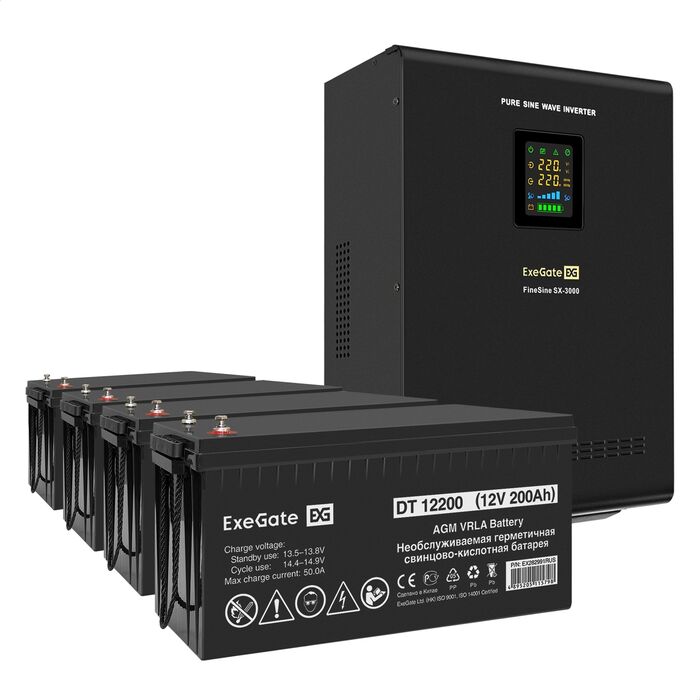 | Емкость батареи и количество батарей, В/Ач | ExeGate DT 12200 (12В/200Ач) 4 шт |