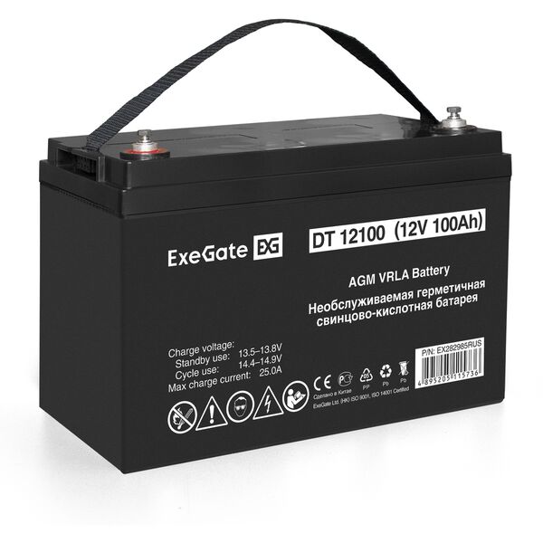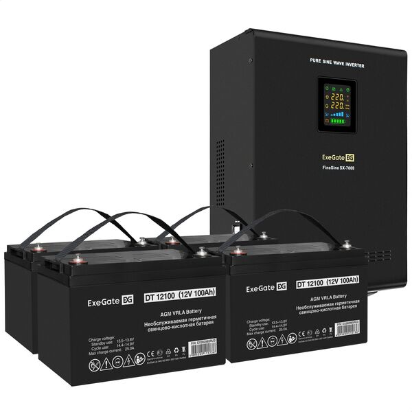| Емкость батареи и количество батарей, В/Ач | ExeGate DT 12100 (12В/100Ач) 4 шт |