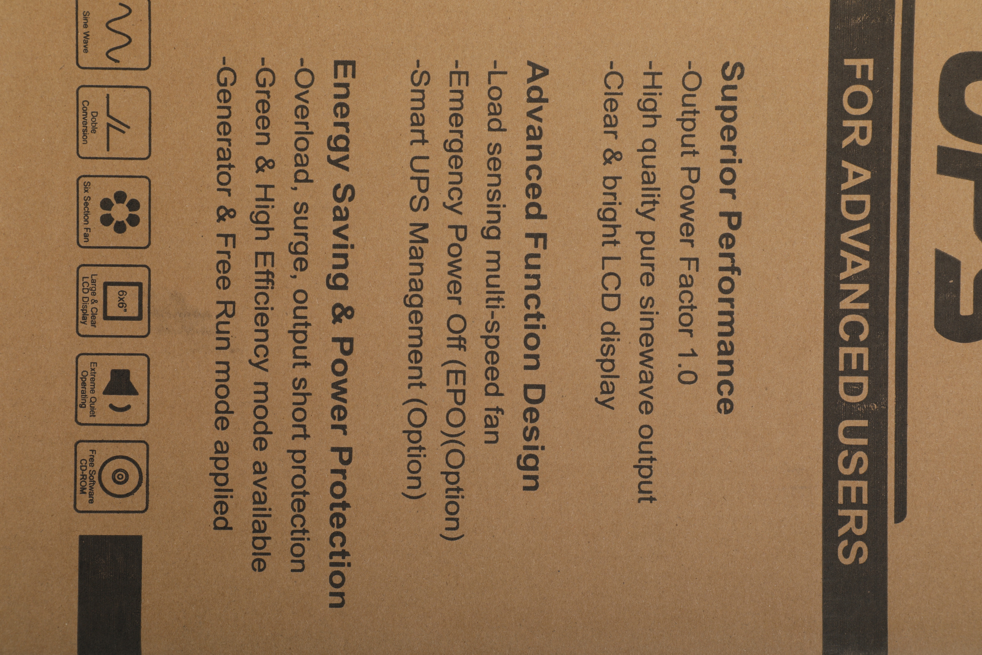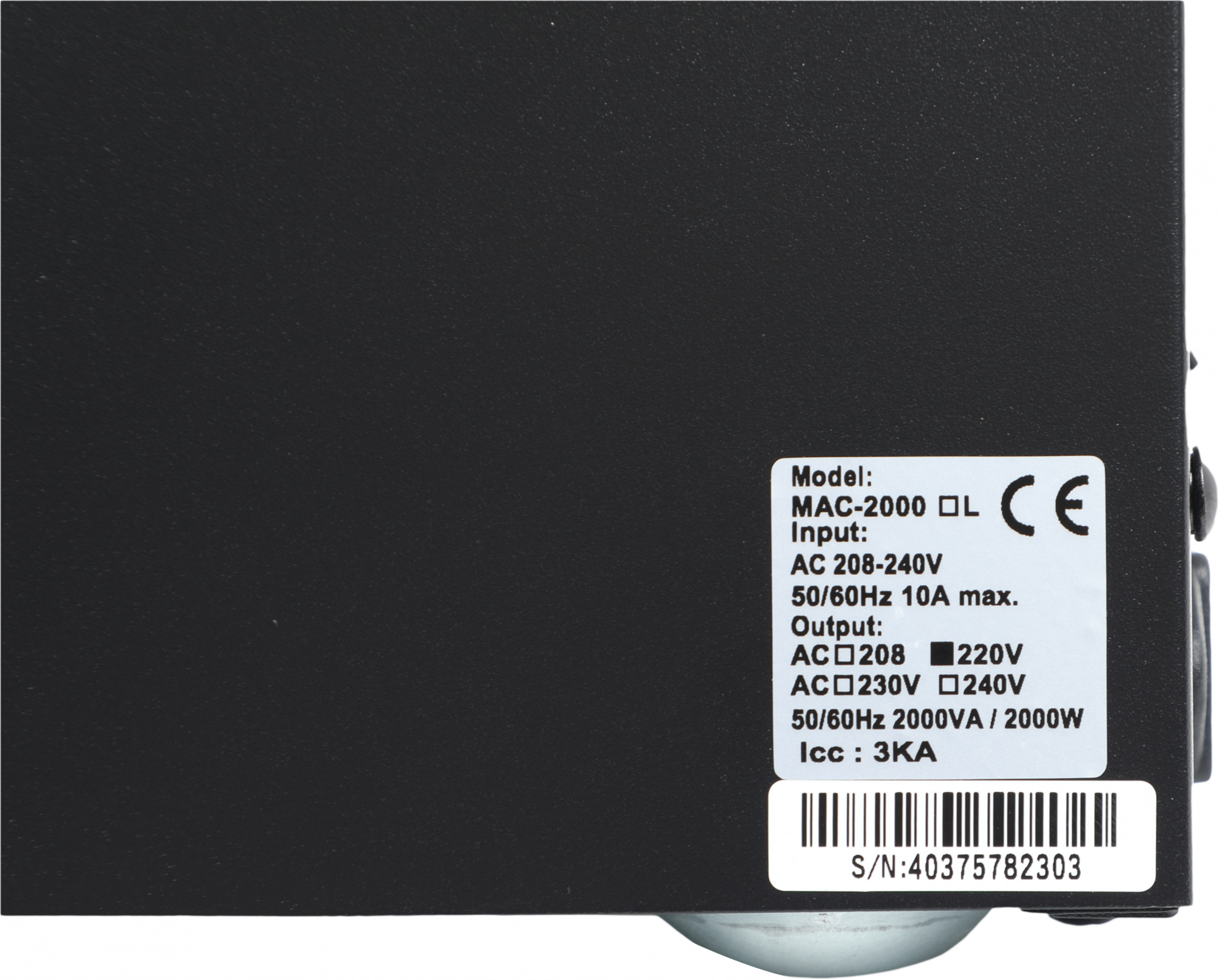 | Особенности | Вх.напряжение - от 120В (нагрузка 25%), 140В (50%), 160В (75%), 180В (100%). Вых.напряжение 208/220/230/240В на выбор пользователя. Холодный старт |