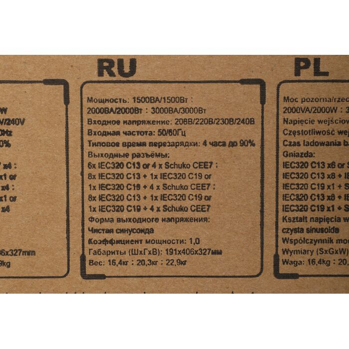 | Выходные разъемы | 8x IEC C13, 1x IEC C19 |
