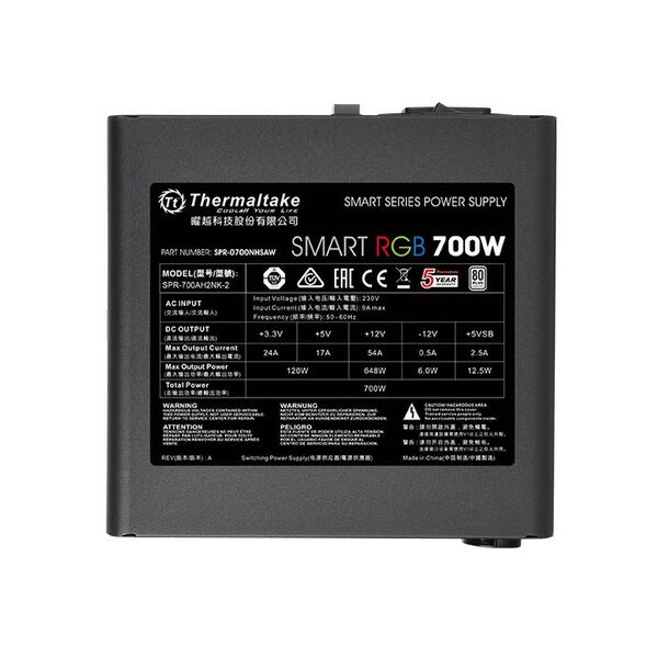 Описание Thermaltake ATX 700W Smart RGB 700 [PS-SPR-0700NHSAWE-1]