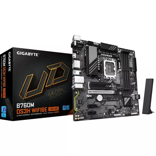 Материнская плата GigaByte B760M DS3H WF6E GEN5 Soc-1700 Intel B760 4xDDR5 mATX AC97 8ch(7.1) 2.5Gg RAID+HDMI+DP