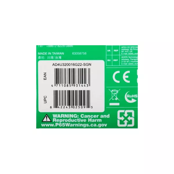 Характеристики Основные характеристики PartNumber / Артикул Производителя AD4U320016G22-SGN Тип памяти DDR4 Количество в упаковке 1...