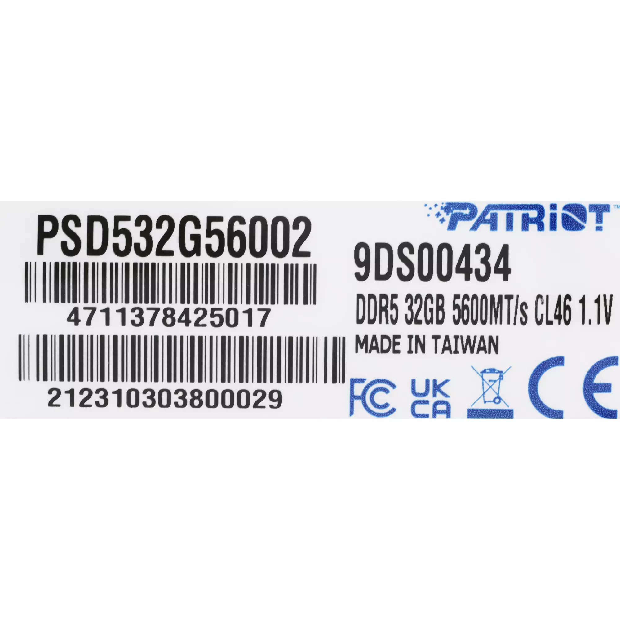 Оперативная память Patriot Signature 32Gb DDR5 5600MHz PC5-44800 CL46 DIMM 288-pin 1.1В dual rank RTL [PSD532G56002]