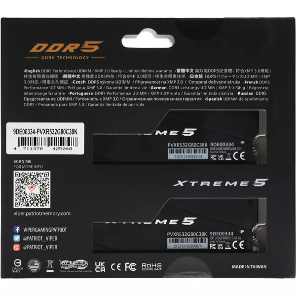 Наличие товара Patriot Viper Xtreme 5 RGB 32 Gb KIT 2x16GB [PVXR532G80C38K]