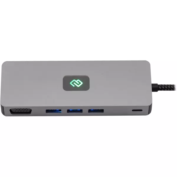 Type-C док-станция DIGMA, 11 портов. 1x HDMI( 4K@60Hz) +1 x DisplayPort ( 4K@60Hz) + 1 x VGA (Full HD@60Hz) +3 x USB-A 3.2(10Gbps) + 1 x Gigabit Ethernet + 1 x USB-C PD 3.0 100W + 1 x 3.5mm Audio + SD+ TF/MicrоSD