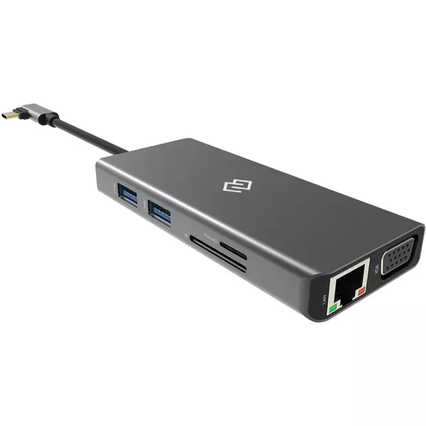 Type-C док-станция DIGMA, 11 портов (HDMI (4K@30HZ, FULL HD@60Hz), VGA, RJ45, 2xUSB 2.0, 2xUSB 3.0, Audio 3.5mm, PD 3.0 USB-C 60W, MicroSD, SD)