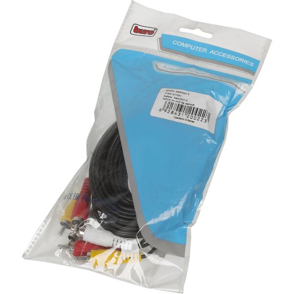 Описание BURO Кабель соединительный аудио-видео 3хRCA (m)/3хRCA (m) 5м. [BAAC027-5]