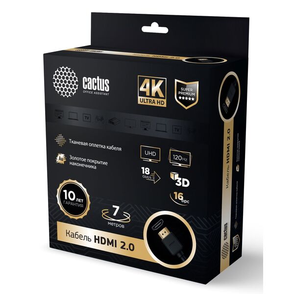 Описание Cactus HDMI (m)/HDMI (m) 7м. [CS-HDMI.2-7]