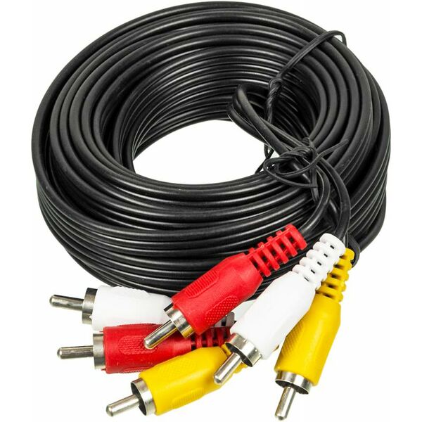 Тройной кабель RCA для передачи аудио и видеосигнала от DVD плеера или видеомагнитофона к телевизору или проектору.