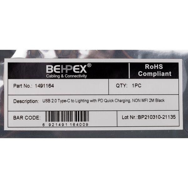 Описание PD quick charge USB Type-C (m)-Lightning (m) 2м